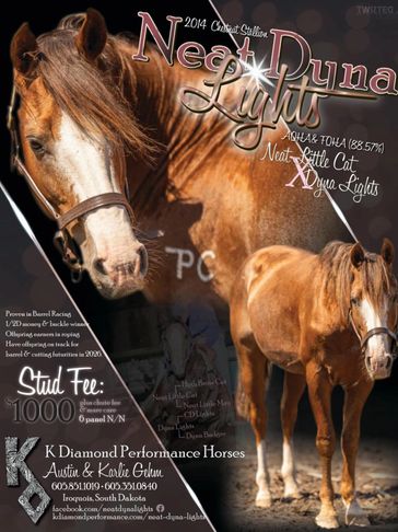 NDL is a 2014 stallion that is running 1D/2D times in 2020/2021 with minimal hauling and improving. He has won multiple checks and buckles. He is very well minded and throws nice gentle foals. So far has money earners in Roping (over $15,000 in 2025) Has foals currently on track for the cutting pen and barrel pen for 2026 competition season.